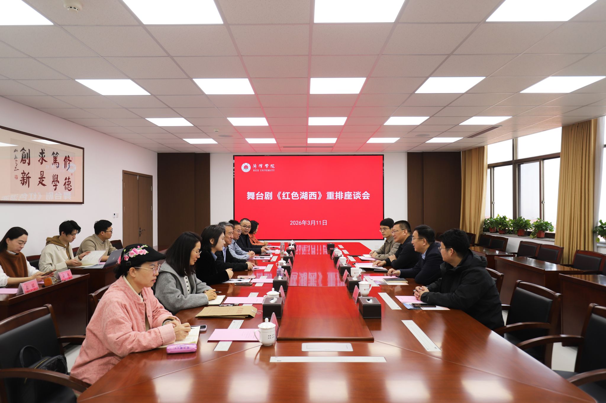 孟令美代表学校对李磊一行的到来表示欢迎。他表示,《红色湖西》根植于湖西地区这块红色历史沃土,是传承红色基因、赓续红色血脉的重要文艺载体,其重排工作不仅是对地方红色文化的深度挖掘与活化利用,更是学校深化校地合作、推进思政教育与文化育人深度融合的重要实践。他强调,要以此次座谈会为契机,加强校地联动,进一步凝聚创作共识、完善创作方案,加快推进舞台剧《红色湖西》重排工作,使其成为开展爱国主义教育、思政教育和文化育人的生动教材。